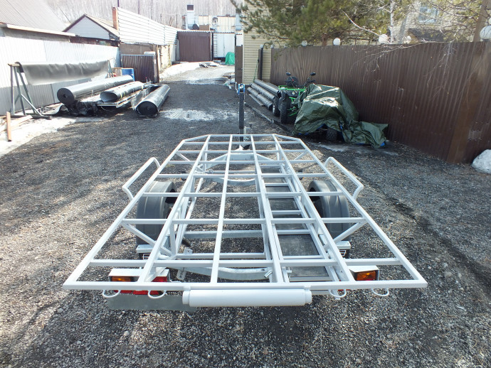 Для производства прицепа мы выбрали долговечный и прочный металл, отказавшись от ненадежных материалов - дерева и фанеры, которые быстро разрушаются от влаги и могут повредить дно аэролодки. Все элементы металлической платформы мы покрываем качественной двухкомпонентной полиуретановой краской, которая применяется в промышленности, например, при покраске мостов. Она отличается износостойкостью, срок её службы без подкраски порядка 10 лет.