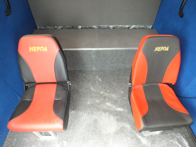 Главное преимущество данной модели – надёжный композитный корпус из непотопляемого материала. В нём нет надувных баллонов, он не боится порезов и проколов. Не нужно следить за давлением, надувать, сдувать, возить с собой насос и ремкомплект. Кроме того, у "Нерпы 560-2М" просторная палуба, на которой достаточно места для размещения снаряжения во время движения и рыбалки с лодки. Борта не широкие, полезное внутреннее пространство 2,2м (от аппарели до кабины) х 1,6м.
