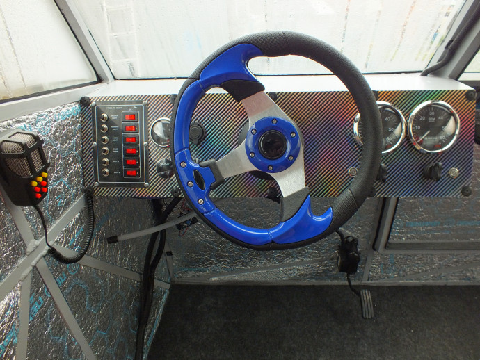 Лодка управляется рулём с приводом на воздушные рули. Оснащение рулевой консоли зависит от комплектации. В Люкс версии установлены: руль, два тахометра со счётчиком моточасов, два вольтметра, указатель уровня топлива. Также аэролодка оборудована горном и сигнальным громкоговорящим устройством.