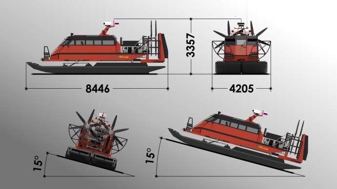 Аэровездеход Нерпа 10.1: габаритные размеры и предельные углы наклона