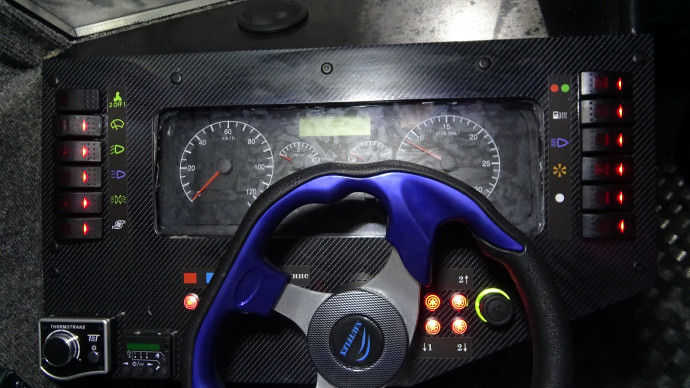 Бензобак ёмкостью 300 л. с бензонасосом и датчиком уровня топлива. Лодка управляется рулём с приводом на воздушные рули. Оснащение рулевой консоли зависит от комплектации. В Люкс версии установлены: тахометр со счётчиком моточасов, указатели температуры двигателя, указатель скорости GPS, давления масла, вольтметр, указатель уровня топлива.