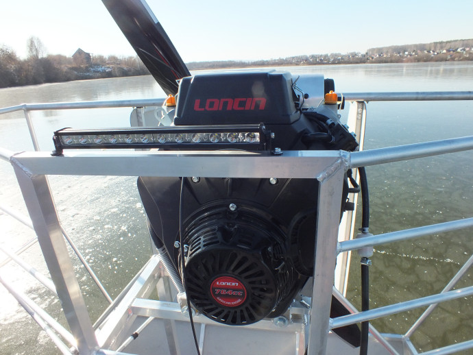 На Нерпе установлен новый четырехтактный двухцилиндровый бензиновый двигатель Loncin 30 л.с. с электростартером. Мы не используем контрактные двигатели, бывшие в употреблении, которые невозможно обслужить и заказать оригинальные запчасти. Бензобак пластиковый с быстросъёмами, ёмкостью 11 литров.