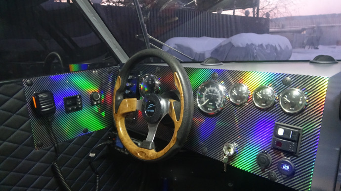 Бензобак ёмкостью 246 л. с бензонасосом и датчиком уровня топлива. Лодка управляется рулём с приводом на воздушные рули. Оснащение рулевой консоли зависит от комплектации. В Люкс версии установлены: тахометр со счётчиком моточасов, указатели температуры двигателя, указатель скорости GPS, давления масла, вольтметр, указатель уровня топлива.
